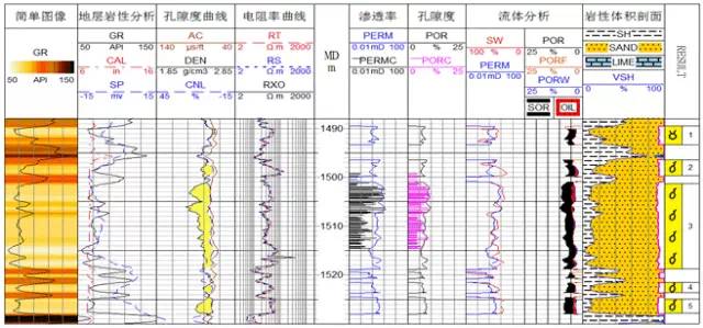 (4)、砂泥岩剖面:低GR的为砂岩储集层,在厚层状态下可以用半幅点分层;碳酸盐岩剖面:低GR说明含泥质少的纯岩石,结合高孔隙度、低电阻率可划分出储集层。